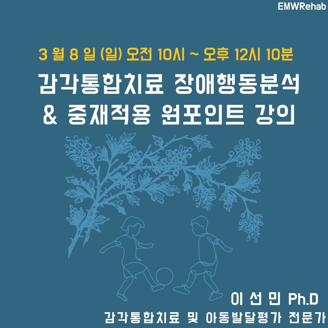 감각통합치료전문가기본코스신청마감 3월 8일 8AM3월 단톡방 할인쿠폰 적용연회원 최저가 2만원