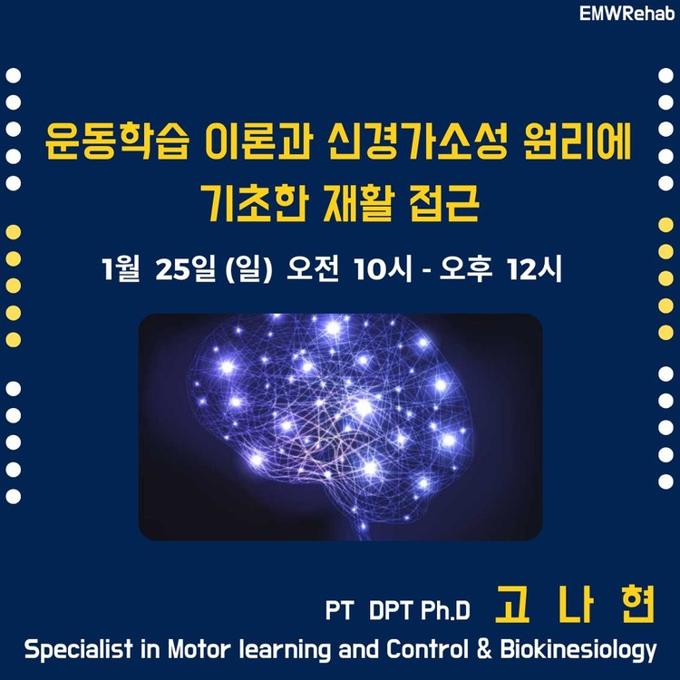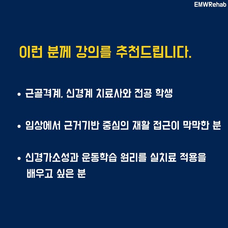 강의 대상자 : 운동학습과 신경가소성 원리 학습 및 근거 중심의 과제 중심적 재활치료 설계를 배우고 싶은 분