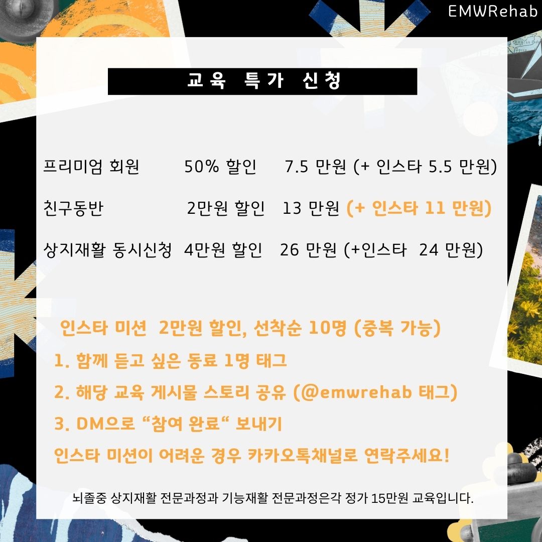 뇌졸중 전문가최저가 11만원 등록 가능 교육 전날 마감프리미엄회원 반값 할인친구동반 2만원 할인상지+기능 신청 4만원 할인인스타 2만원 추가할인