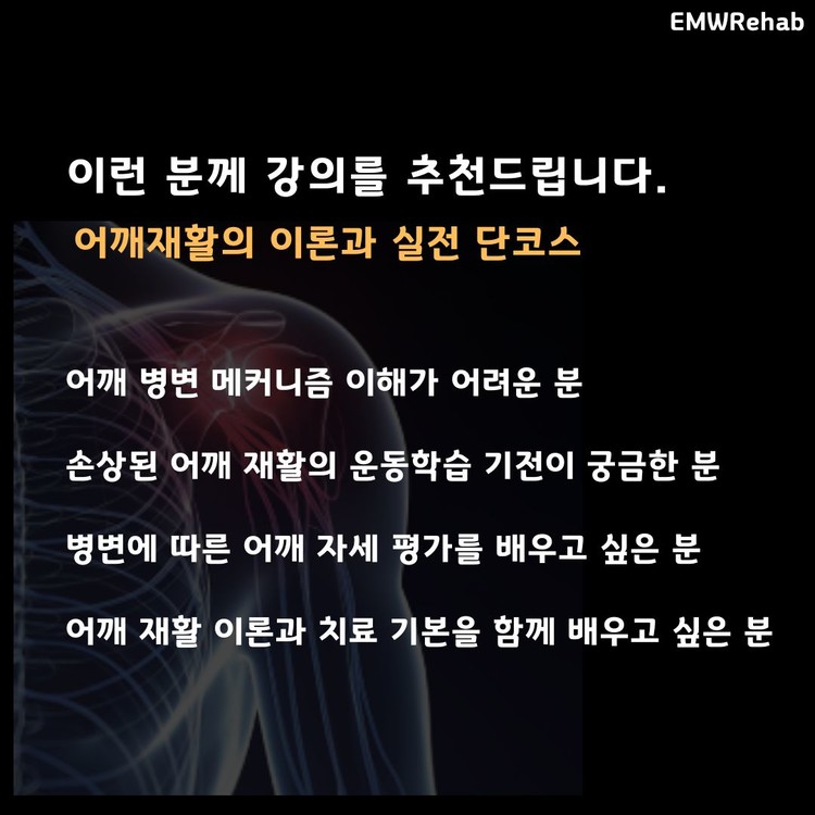 강의 대상자 : 어깨 병변 이해 및 어깨 재활 기본 실무를 학습하고자 하는 분