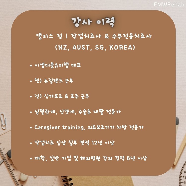 앨리스 정 I 작업치료사 & 수부전문치료사 (뉴질랜드, 호주, 싱가포르, 한국)