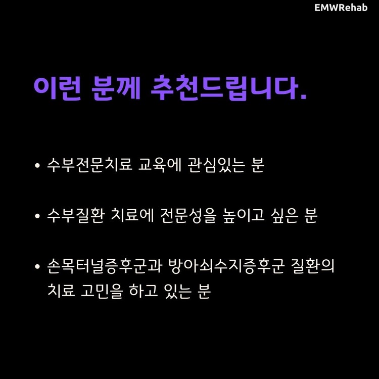 강의 대상자 : 손목터널증후군(CTS) & 방아쇠수지증후군(TF)의 근거기반중심의 평가와 치료를 배우고 싶은 분