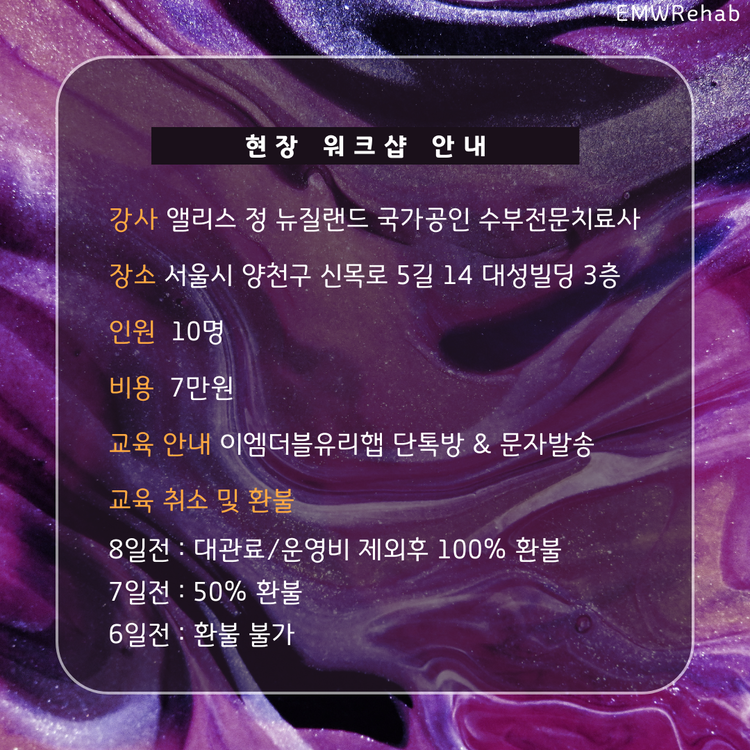 수부전문치료최저가 6만원 등록 가능교육 전날 마감프리미엄회원 반값 할인설문 참가자 2만원 할인인스타 1만원 추가 할인